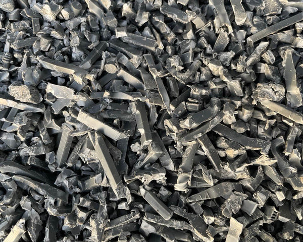Les différentes étapes pour obtenir les accessoires récyclés. En cours de R&D et d'ajustement, nous y sommes presque.